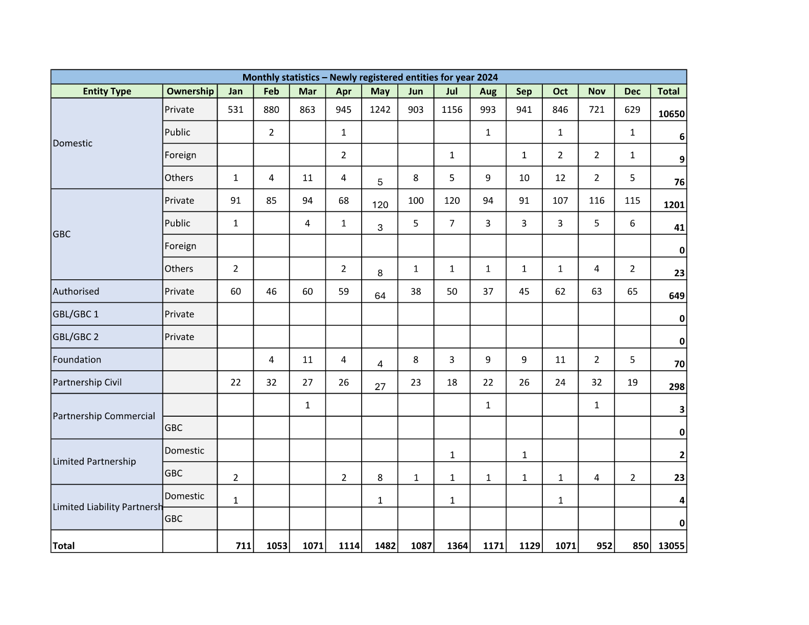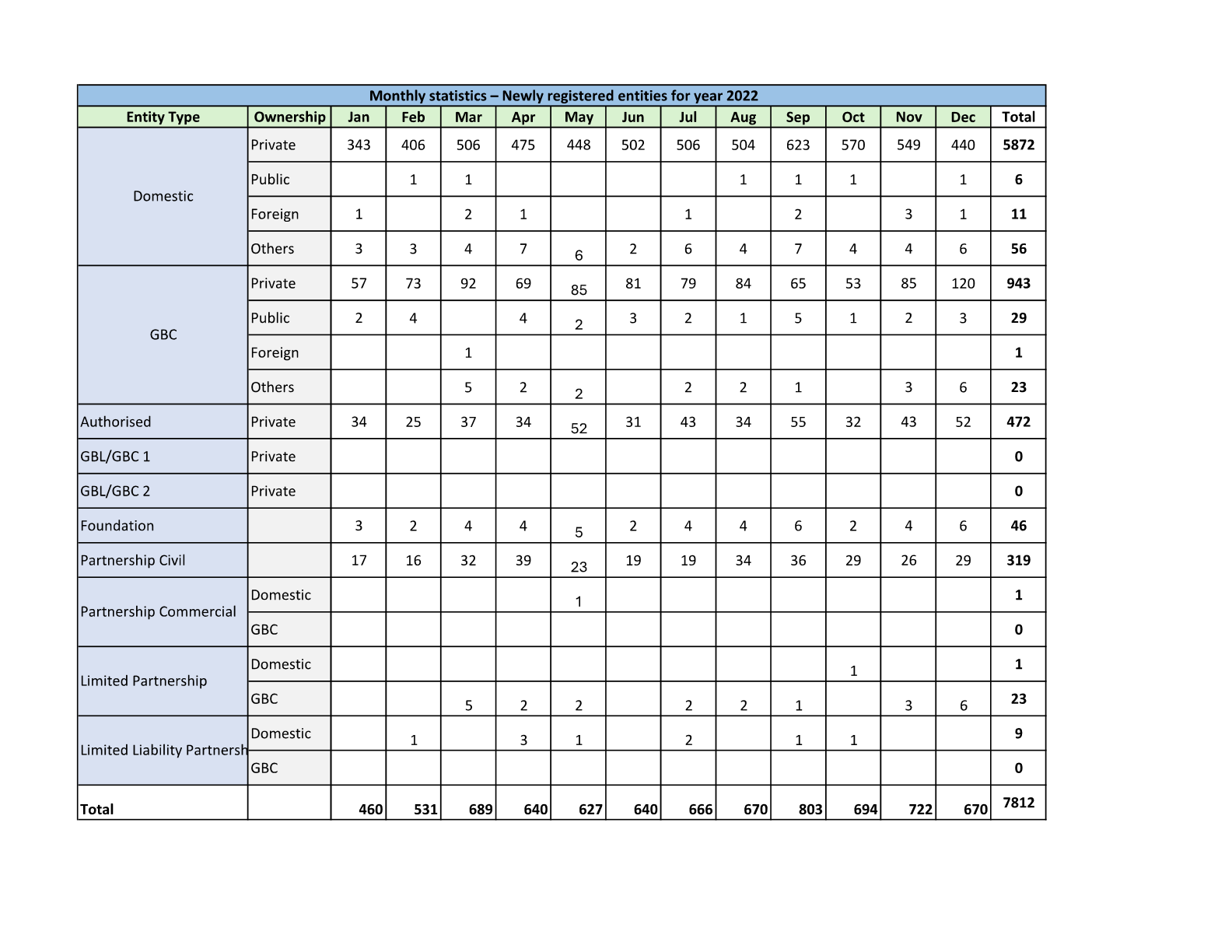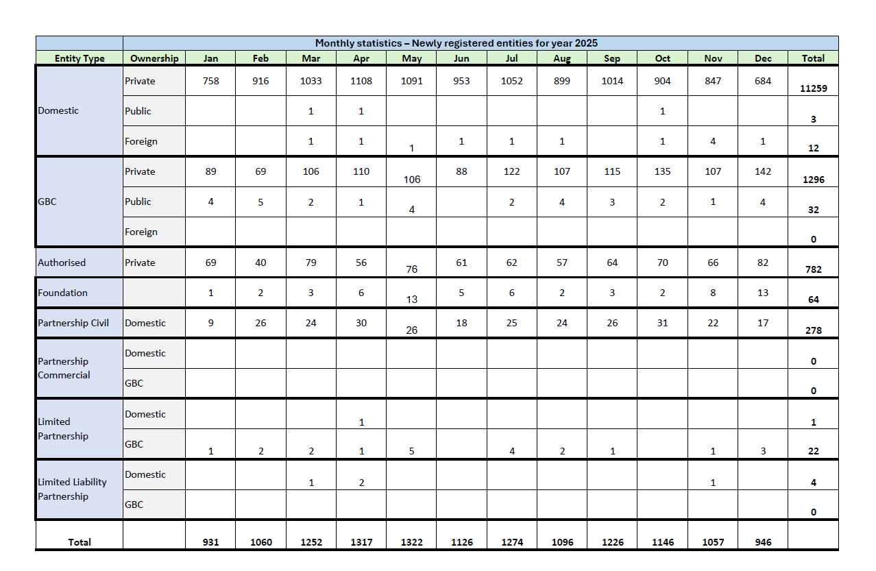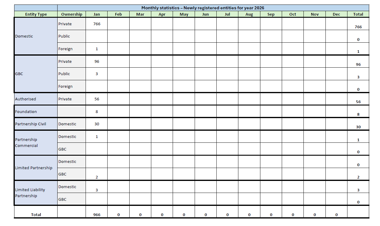 Monthly Statistics - Newly Registered Entities for Year 2022-2026