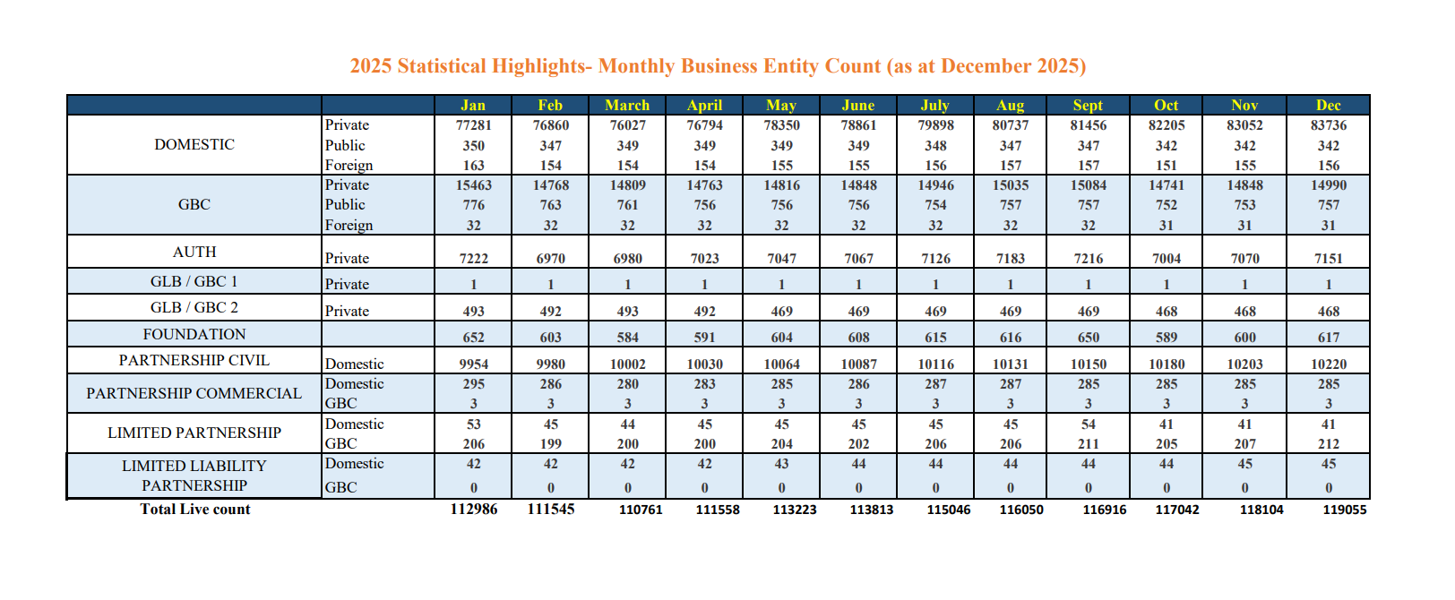 2025 Statistical Highlights - Monthly Business Entity Count