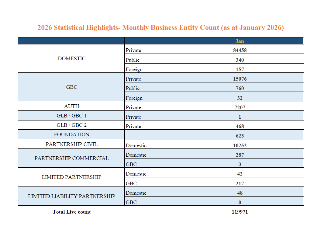 2026 Statistical Highlights - Monthly Business Entity Count