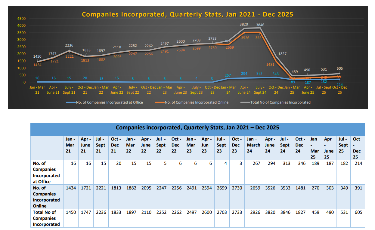 Companies Incorporated, Quarterly Stats, Jan 2021 - Dec 2025