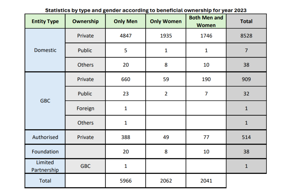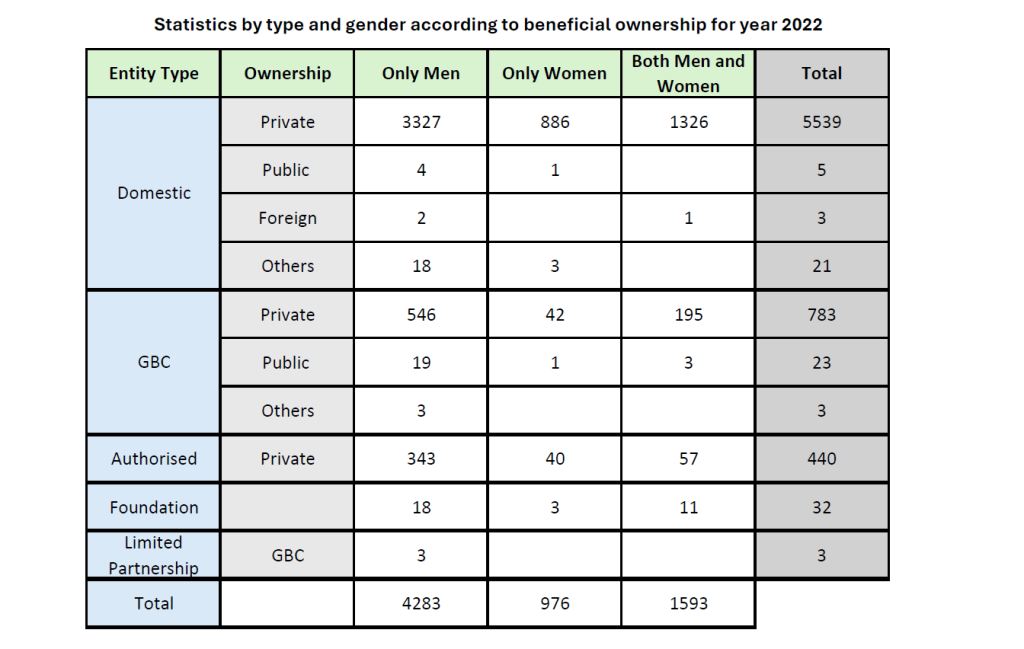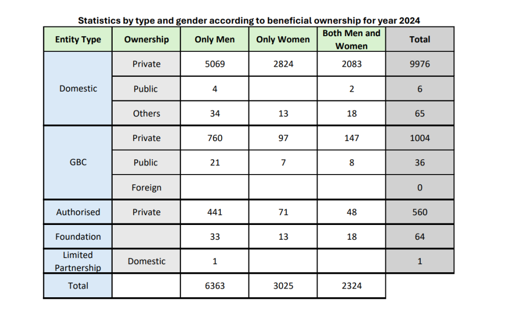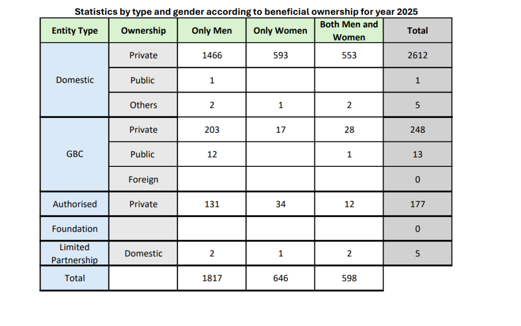 Statistics by Type and Gender according to Beneficial Ownership for Year 2022-2025