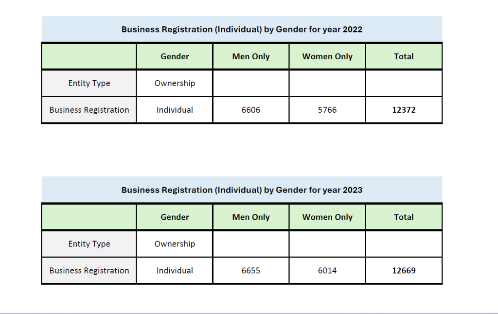 Business Registration (Individual) by Gender for Year 2022-2025