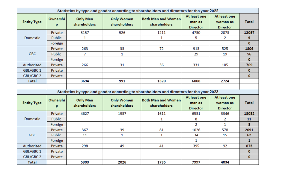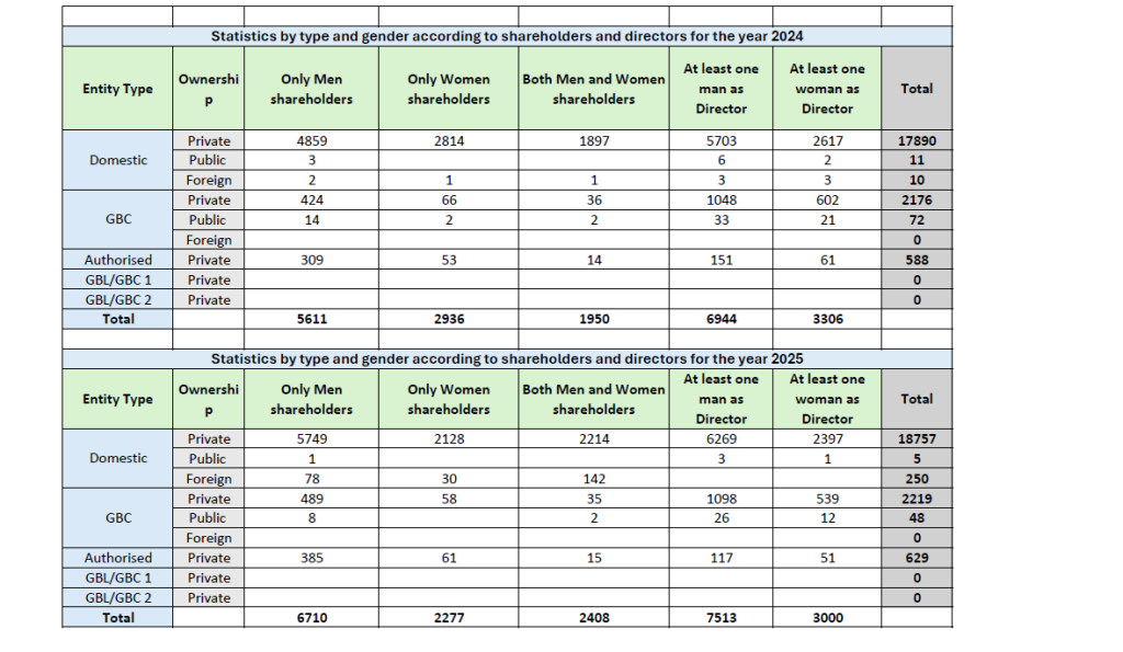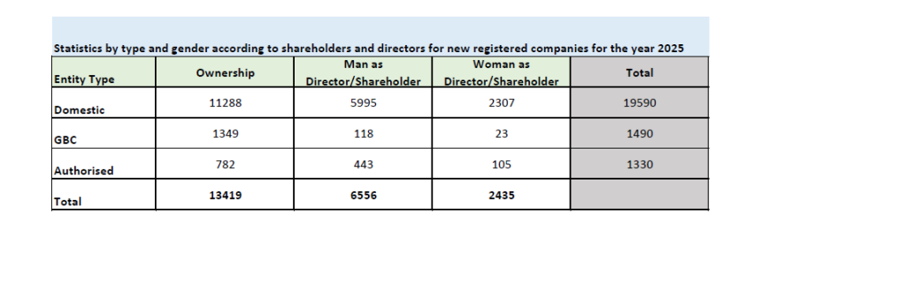 Statistics by Type and Gender according to Shareholders and Directors for New Registered companies for Year 2025